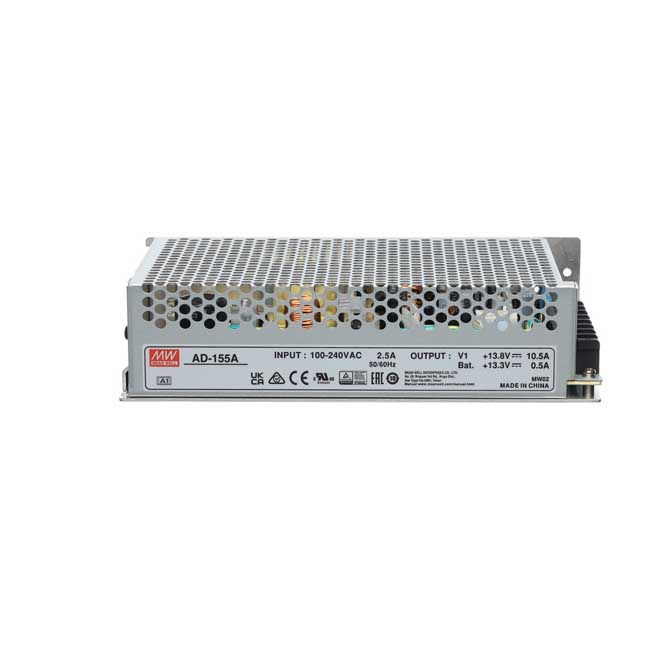 Mean Well ADD-155A: 13,8V/9,5A spínaný zdroj s nabíječkou akumulátorů, účinnost 81 %, ochrany, univerzální vstup, kompaktní rozměry, průmyslová kvalita.