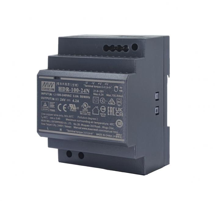 Spolehlivý napájecí zdroj Mean Well HDR-100-12N, 12V, 7,5A, výkon 90W. Ultra tenké provedení, EMC certifikace, vysoká účinnost a komplexní ochrany.
