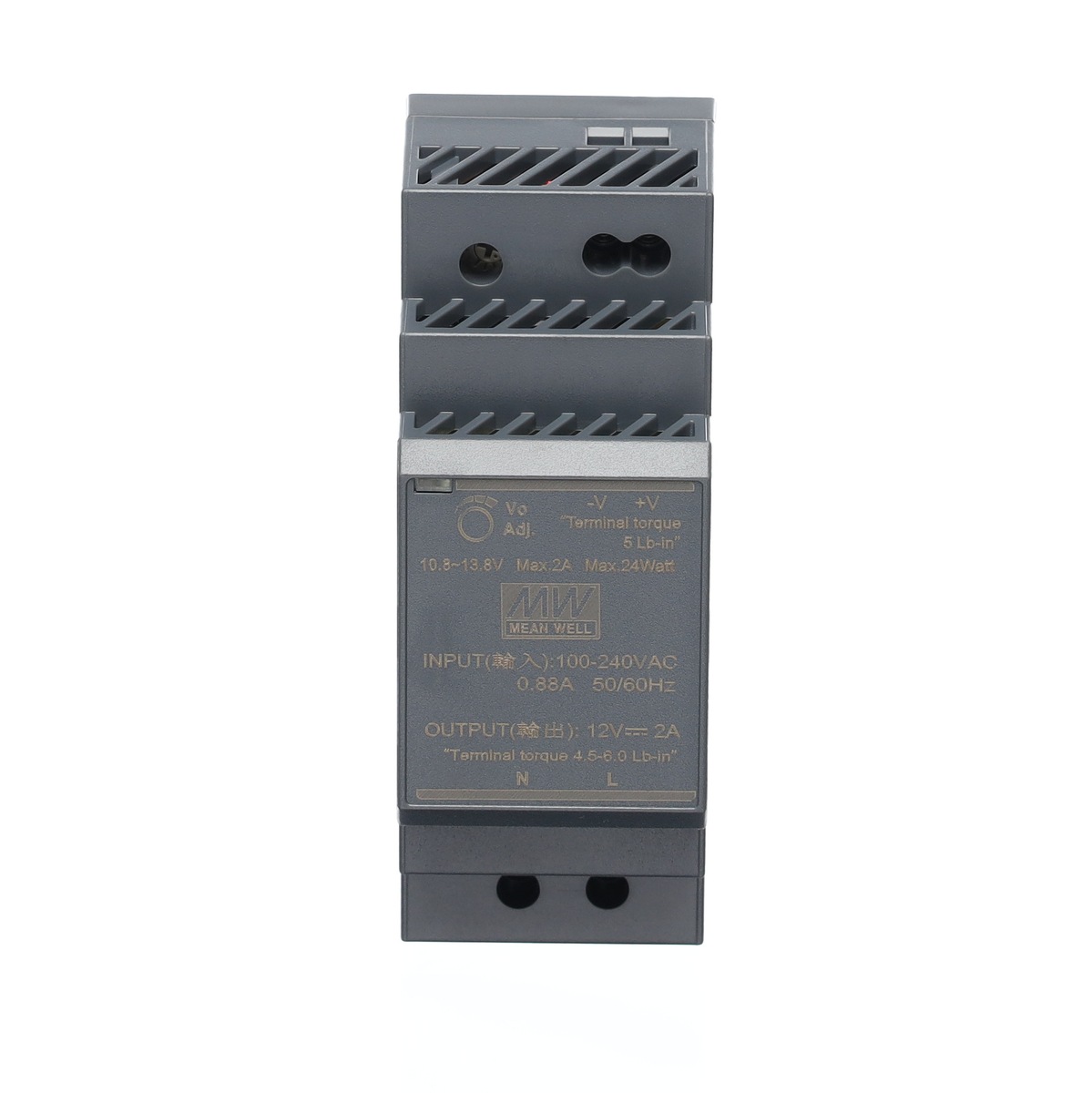 Ultratenký napájecí zdroj Mean Well HDR-30-12, 12V/2A, 88% účinnost, ochrany, DIN lišta, certifikace UL/TUV/EN. Ideální pro domácnost i průmysl.