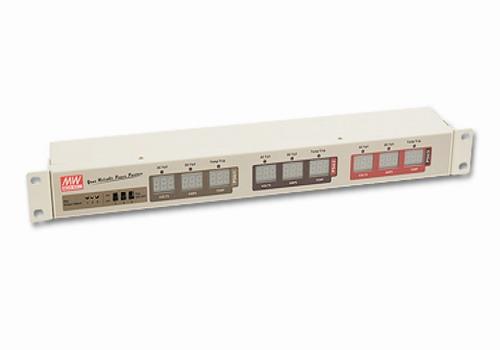 Monitorovací jednotka Mean Well RCP-MU: digitální měření, reléové kontakty, řízení až 3 RCP-1000 zdrojů, 1U rack, univerzální vstup, alarmy AC/DC/teplota.