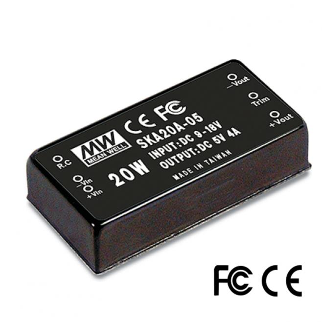 Mean Well SKA20A-15 – kompaktní DC/DC měnič 15V, 20W, extra spolehlivost