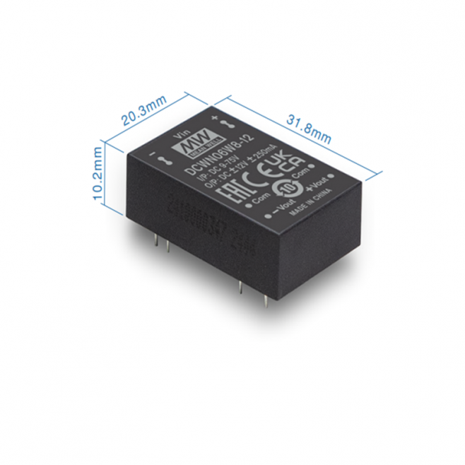 Mean Well DCWN06W8-05 – Duální izolovaný DC/DC měnič ±5V, 6W