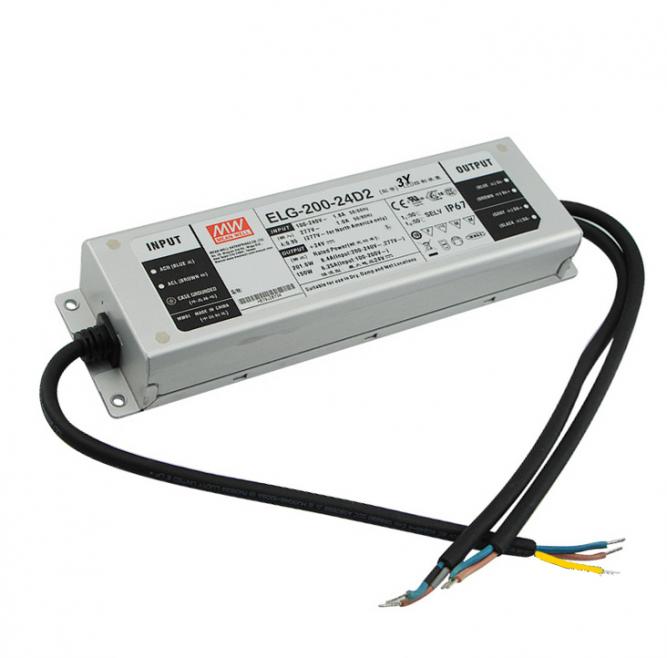 LED napájecí zdroj Mean Well ELG-200-24D2-3Y, 24V, 8,4A, 201,6W, IP65, vysoká účinnost a inteligentní stmívání. Originál se zárukou a technickou podporou.