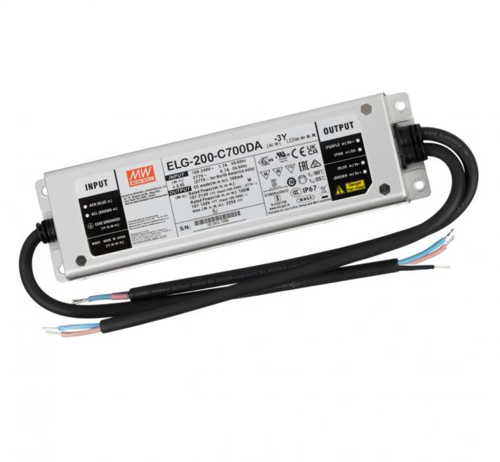 LED driver Mean Well ELG-200-C1750DA-3Y – 1750 mA, 199,5 W, DALI řízení, účinnost 92 %, ochrany, robustní provedení. Pro LED osvětlení a průmysl.