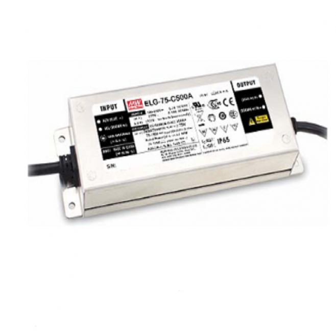 LED zdroj Mean Well ELG-75-C700AB-3Y, 700mA, 74,9W, IP65/67, vysoká účinnost, ochrany, certifikace UL/ENEC/EAC. Pro průmyslové i veřejné osvětlení.