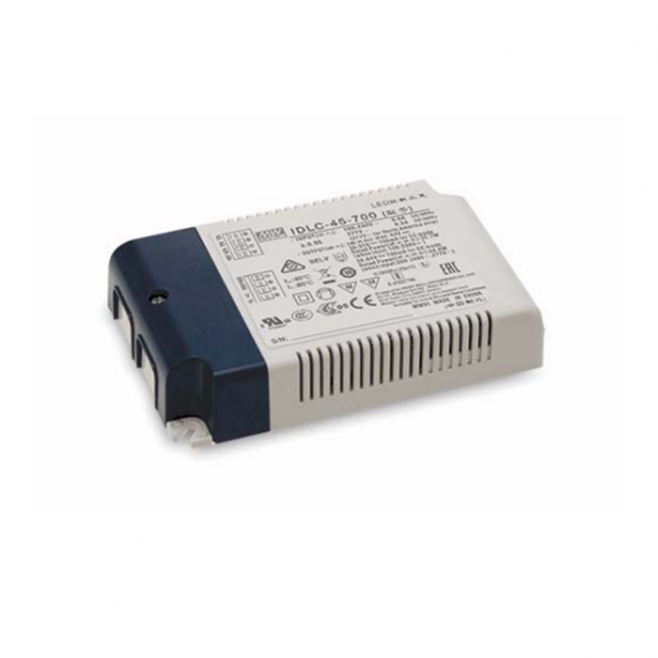 LED zdroj Mean Well IDLC-45A-700: 700mA, 44,8W, vysoká účinnost, ochrana proti přetížení, PFC, certifikace, snadná instalace. Oficiální specialista Mean Well.