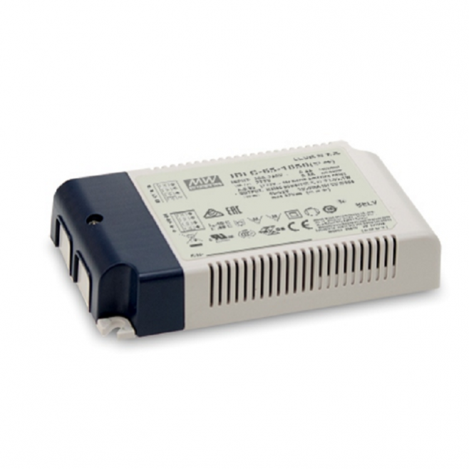 LED zdroj Mean Well IDLC-65-1400DA, 1400mA, výstup 34–46V, výkon 64,4W, DALI stmívání, účinnost 86,5 %, kompaktní rozměry, spolehlivé ochrany.