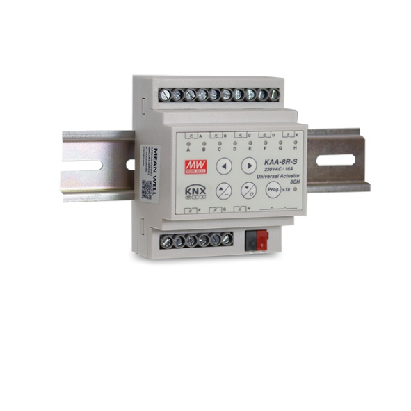 Univerzální KNX akční člen Mean Well KAA-8R-16S nabízí 8×16A výstup, certifikace, kompaktní montáž na DIN lištu. Ideální pro automatizaci budov.