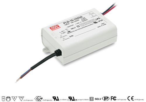 LED napájecí zdroj Mean Well PLD-16-1400B – 1400mA, 16,8W, účinnost 84 %, ochrany proti zkratu a přehřátí, certifikace, kompaktní rozměry.