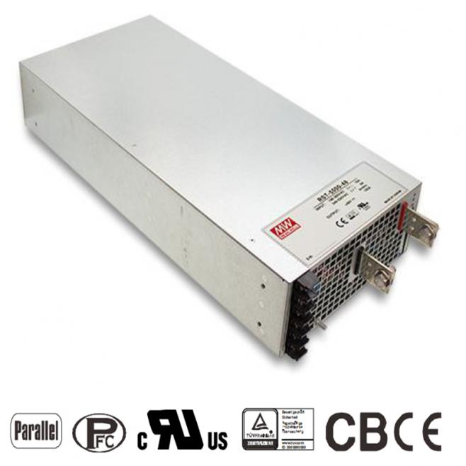 Spínaný napájecí zdroj Mean Well RST-5000-24: 24V, 200A, 4800W, vysoká účinnost, dálkové ovládání, alarmy, certifikace, 3-fázový vstup.