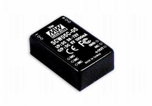 Mean Well SCW05B-09 – DC/DC měnič 9V, 5W, účinnost 81 %, ochrana proti přetížení i zkratu, kompaktní rozměry, certifikace EMC. Rychlé dodání z ČR.
