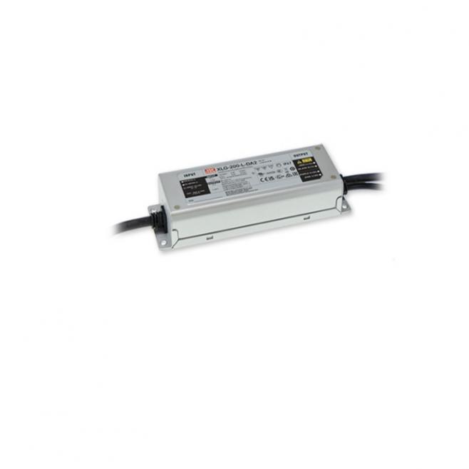 Spínaný LED zdroj Mean Well XLG-200I-H-DA2 – výkon 200 W, proud 3500–5550 mA, výstup 27–56 V, vysoká účinnost, DALI-2 stmívání a IP67 krytí.