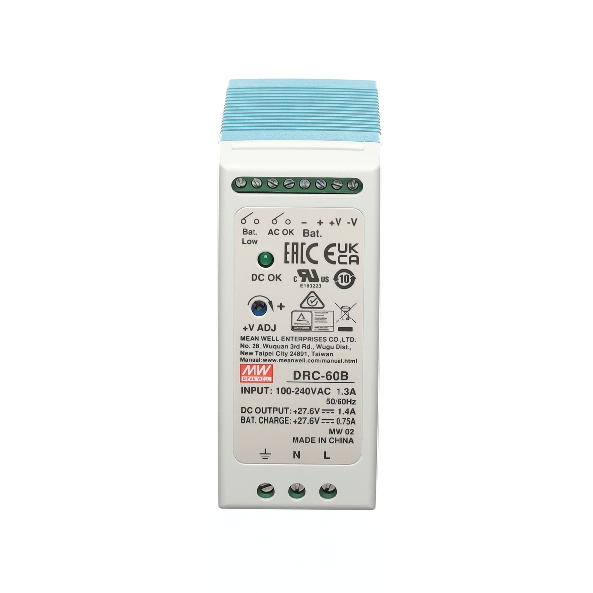 Záložní napájecí zdroj Mean Well DRC-60B, 27,6V/2,15A, UPS funkce, signalizace AC/Battery, vysoká účinnost, montáž na DIN lištu. Rychlé doručení.