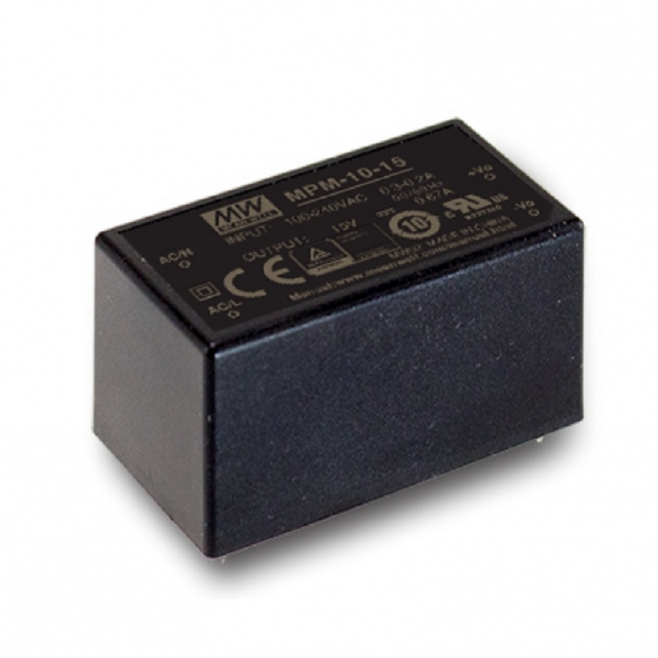 MEAN WELL MPM-10-3.3: spínaný medical AC/DC zdroj, 3,3 V, 2,5 A, 8,3 W, vysoká účinnost, nízký svodový proud, certifikace IEC60601-1.
