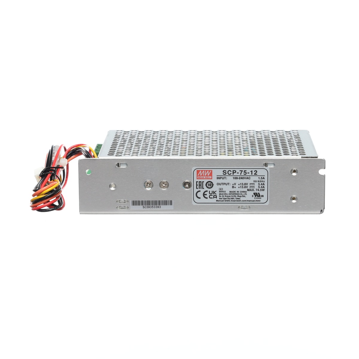 Mean Well SCP-75-12 – spínaný napájecí zdroj 13,8V/5,4A, výkon 74,5W, vysoká spolehlivost, ochrany, univerzální vstup, certifikace UL/CB/CCC.