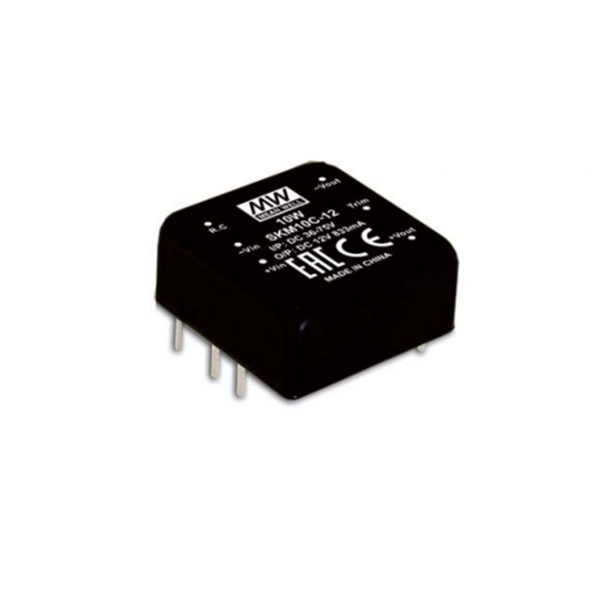 DC-DC měnič Mean Well SKM10E-05, 5V/2A, účinnost 87 %, kompaktní 1"x1", EMC/bezpečnostní certifikace. Spolehlivý průmyslový napájecí zdroj.